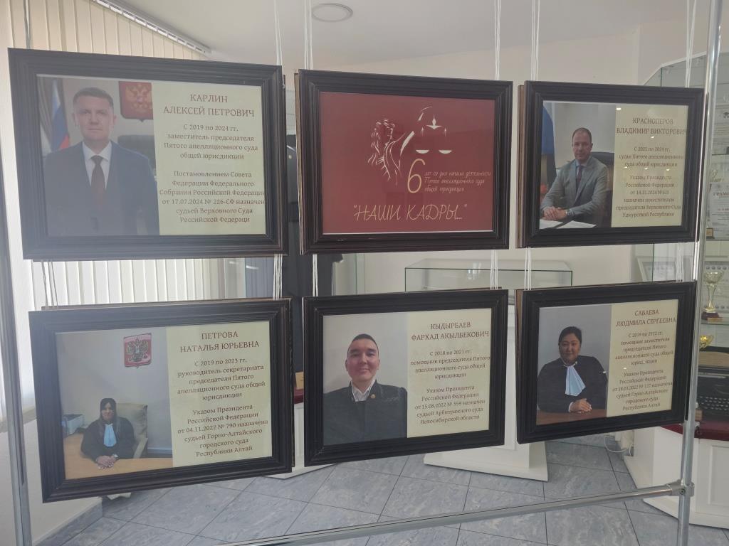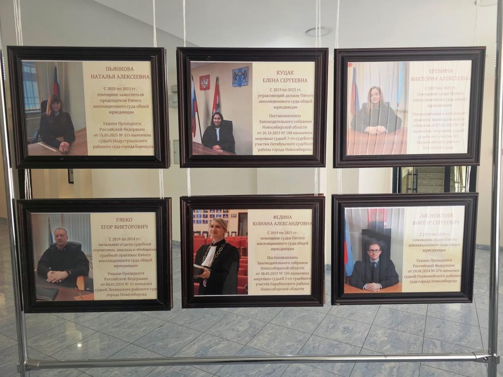 1 октября 2019 года Пятый апелляционный суд общей юрисдикции начал свою деятельность. И вот уже 6 лет коллектив суда под руководством председателя суда Марины Владимировны Алексиной ежедневно выполняет ответственную работу, сохраняя и преумножая традиции отечественного правосудия. В преддверии этой знаменательной даты в Пятом апелляционном суде общей юрисдикции открылась фотовыставка «Наши кадры». Экспозиция представляет собой коллекцию из 11 портретов людей, для которых Пятый апелляционный суд общей юрисдикции стал важной вехой в их профессиональном становлении. Сегодня они стоят на защите прав граждан в качестве судей разных инстанций не только Новосибирской области, но и других субъектов Российской Федерации. Это не просто фотографии - это лица людей, которые искренне влюблены в профессию юриста и вдохновляют других следовать их примеру. Также в эти дни состоялась выставка рисунков судей и сотрудников аппарата суда. С помощью разных техник авторы через художественные образы раскрыли своё видение темы «Инструкция – как много в этом слове…». Галерея рисунков поразила разнообразием талантов и оригинальностью подачи материалов. Но все эти работы объединяет одно – глубокое понимание личной ответственности за общее дело. Проведение праздничных выставок на различные тематики, приуроченных ко дню образования суда, стало доброй и по-настоящему значимой традицией в этих стенах. Это ежегодное событие заставляет окунуться в общую память, перелистнуть страницы пути, вспомнить самые яркие моменты. Накопленный за эти годы бесценный опыт, несомненно, станет фундаментом для создания славной истории Пятого апелляционного суда общей юрисдикции и ориентиром для последующих поколений служителей Фемиды.